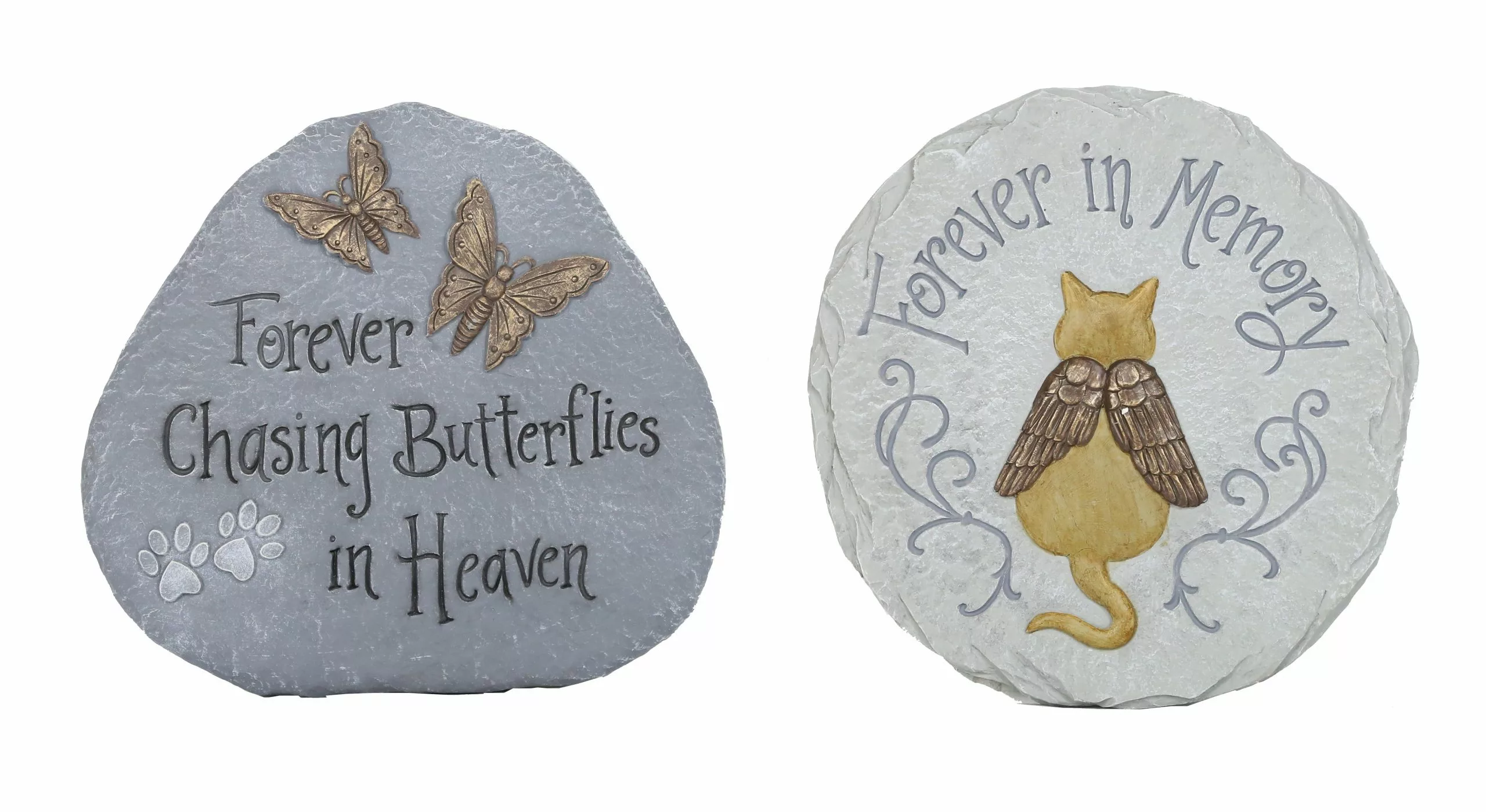 Remember an old friend always with this decorative pet memorial stone. Beautiful stone texture and angel wing etchings.