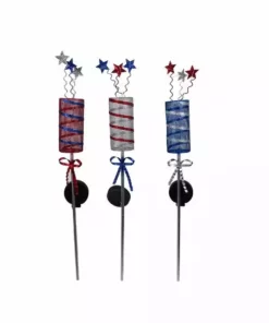 Light up your outdoor space with Alpine’s solar firecracker stakes with red, white or blue LED lights. The lights flicker to look like they are shooting out stars It’s a safe way to celebrate the holidays and show your patriotic support! Charging by day, lights up at night without any electricity.