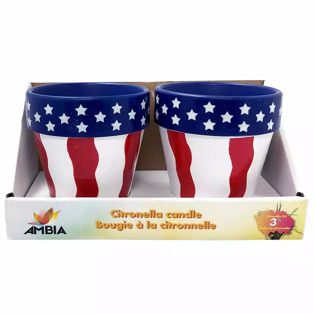 This 2 Pack of American Flag Citronella Candles provides protection from flying insects and adds a patriotic touch to your outdoor celebrations.Β