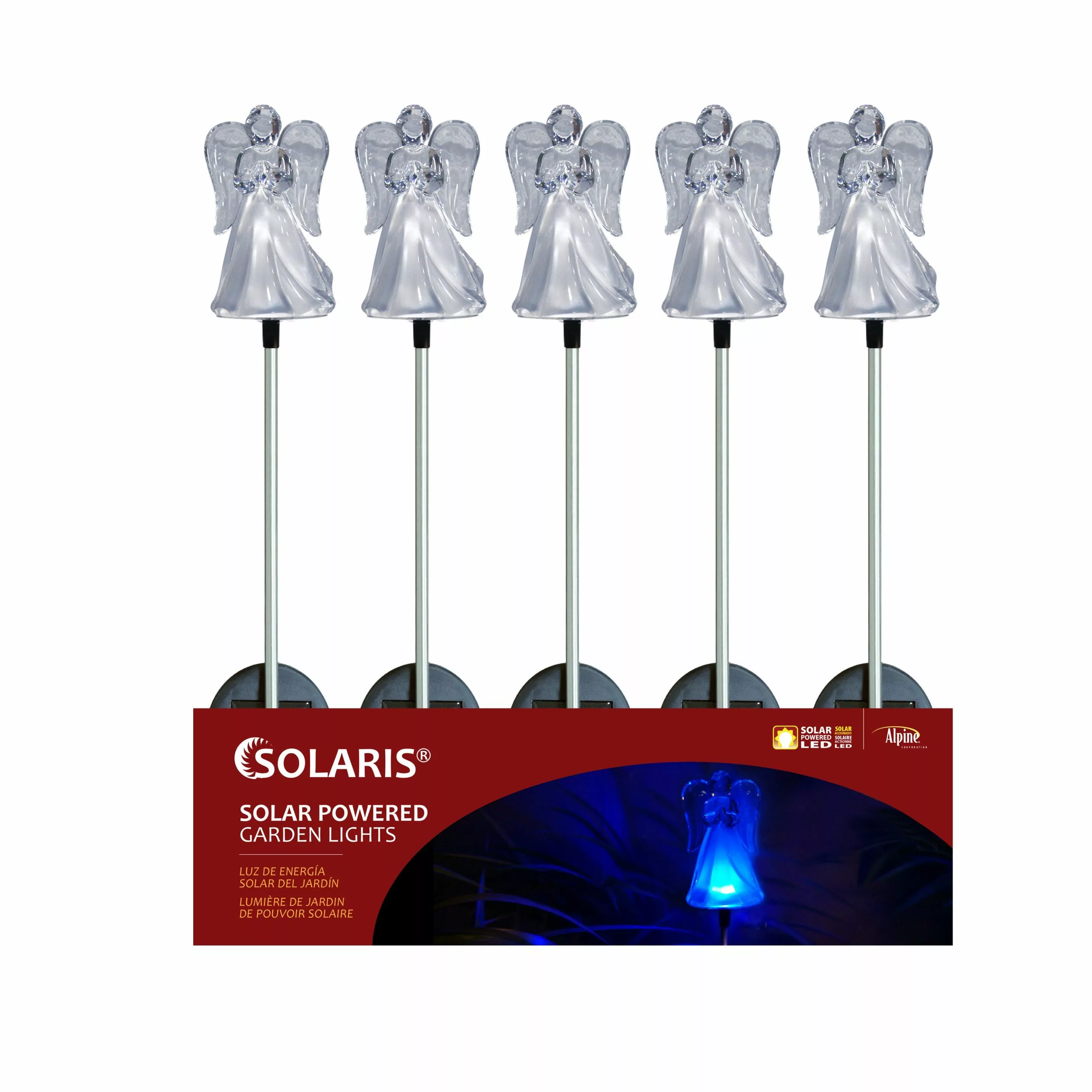 These angelic garden stakes glisten like crystal in the sunlight and at night the solar powered LED illuminates them and your outdoor space in a heavenly blue hue. The stake is made of stainless steel which is both elegant and durable.