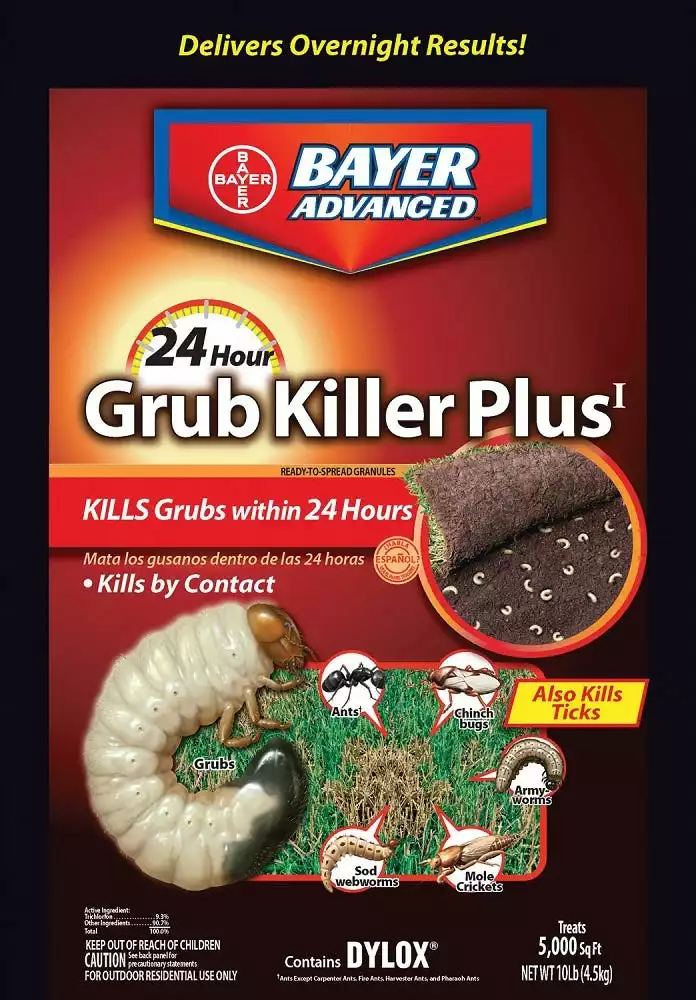 - Kills on Contact: Active ingredient DYLOX kills grubs on contact