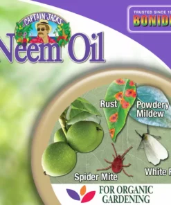 An all-purpose insecticide, miticide, and fungicide for organic gardening that is derived from the Neem seed. Safe to use on roses, flowers, vegetables, herbs, spices, houseplants, trees, turf and shrubs. Kills all stages of insects including eggs, larvae, and adults.