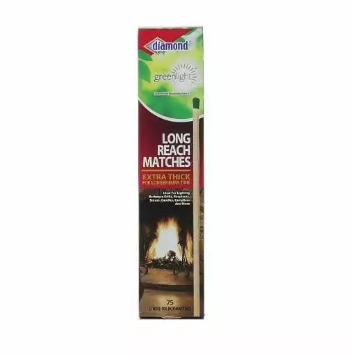 Diamond® Long Reach Matches are extra-long and thick for a longer burn time to help light fireplaces, grills, or multiple candles around the home. You’ll be ready to light the fire with these wooden matches. Each box contains 75 matches that are ready to strike on the box.
