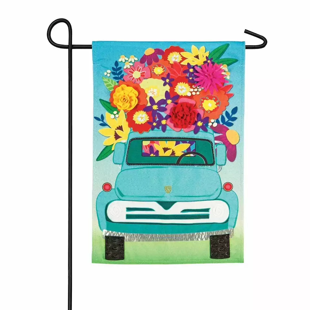 Evergreen Mint Flower Truck Garden Linen Flag –Β 14L8908BL