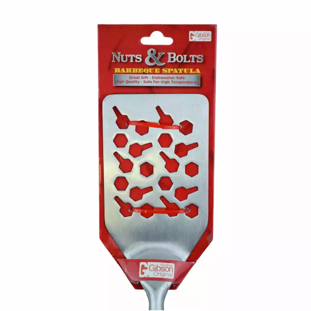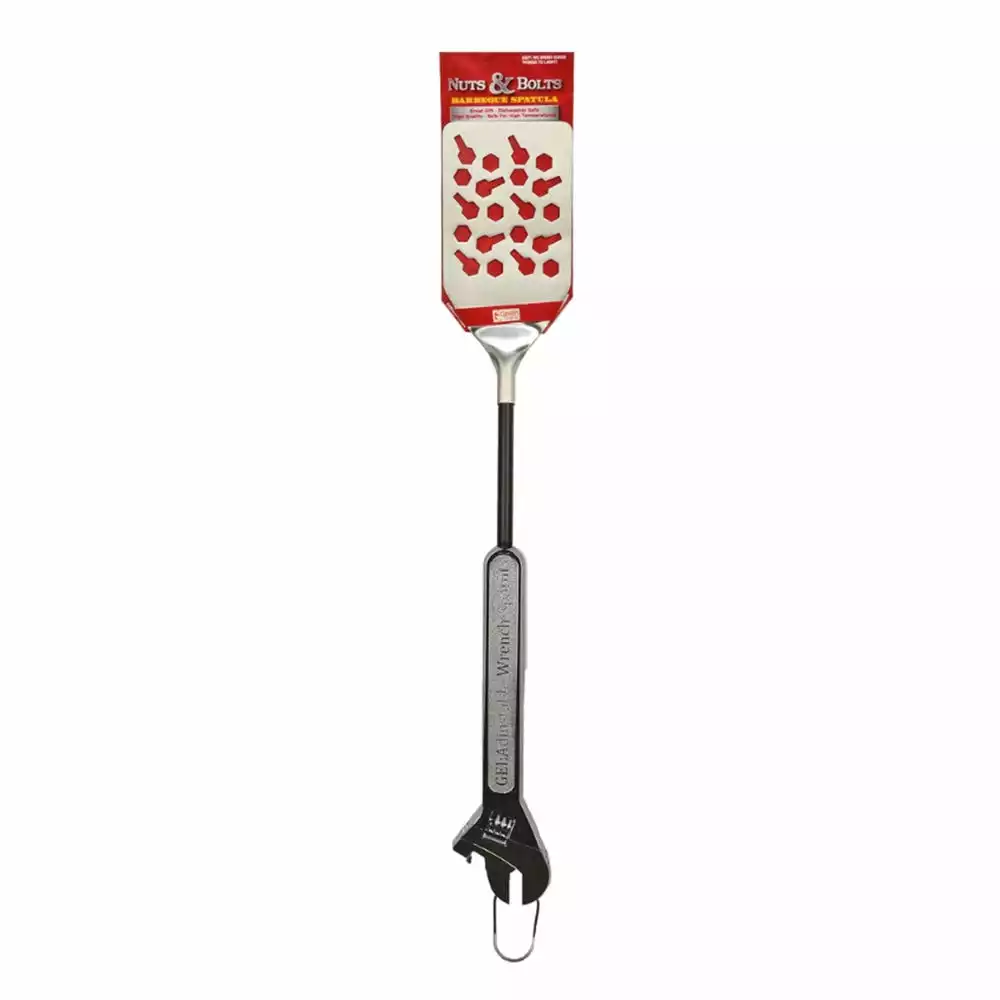 The Nuts & Bolts BBQ Spatula is dishwasher safe and heavy duty! A unique gift for friend or family, guy or gal! The Nuts & Bolts BBQ Spatula comes with a realistic wrench handle and nut and bolt shaped slats in the spatula blade. It also has a bottle opener and convenient hanging hook. A unique gift for any mechanic or home improvement enthusiast.