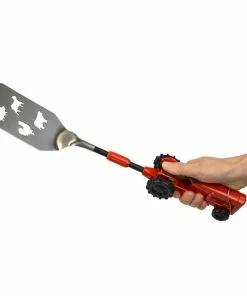 The Gibson Tractor BBQ Spatula comes with a detailed red tractor handle and livestock themed die cuts in the spatula blade. It also has a bottle opener and convenient hanging hook. The Tractor BBQ Spatula is dishwasher safe and heavy duty. A unique gift for any grill master, farmer or outdoor enthusiast.