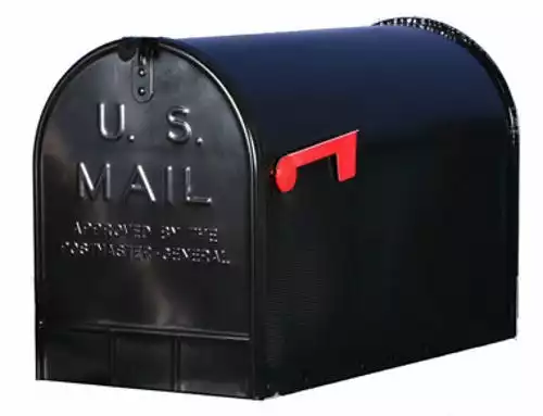 This jumbo size mailbox is constructed from heavy-duty galvanized steel and has a durable ribbed body for extra strength. Its extra large capacity can hold mail for days as well as small parcels. Steel latch and aluminum flag. Rust resistant powder coat finish.