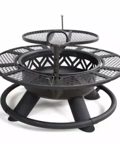 This steel fire pit with BBQ grate is the perfect outdoor piece to gather around with friends and family. Enjoy the warmth of the fire by getting cozy and using the outer table ring as an oversized footrest. A great way to make memories with loved oneβs cooking burgers, hotdogs, smores, and much more over the fire.