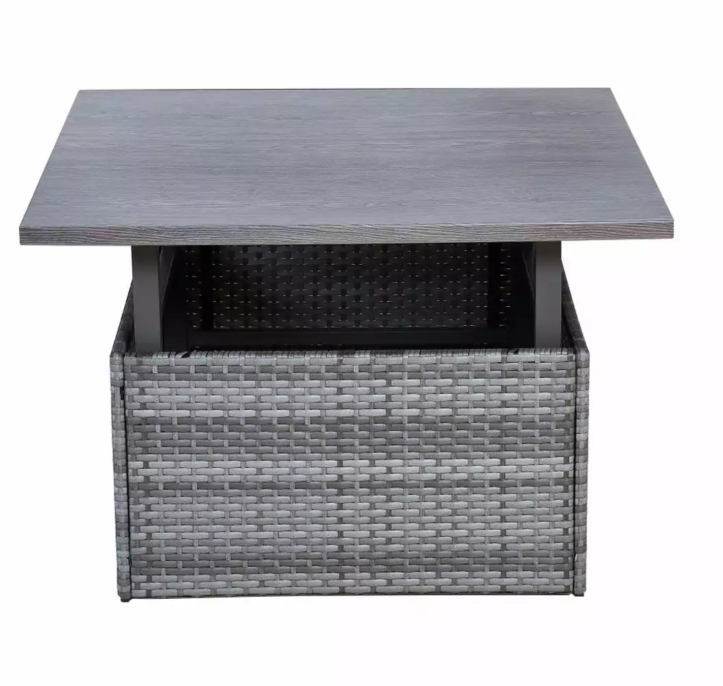This Patio Wicker Table with Lift Top has a metal frame with powder-coated steel making it even more stable and durable. Perfect for placing on your patio, garden area, backyard or by the pool side. The two-height function allows you to easily lift and lower to meet your needs.