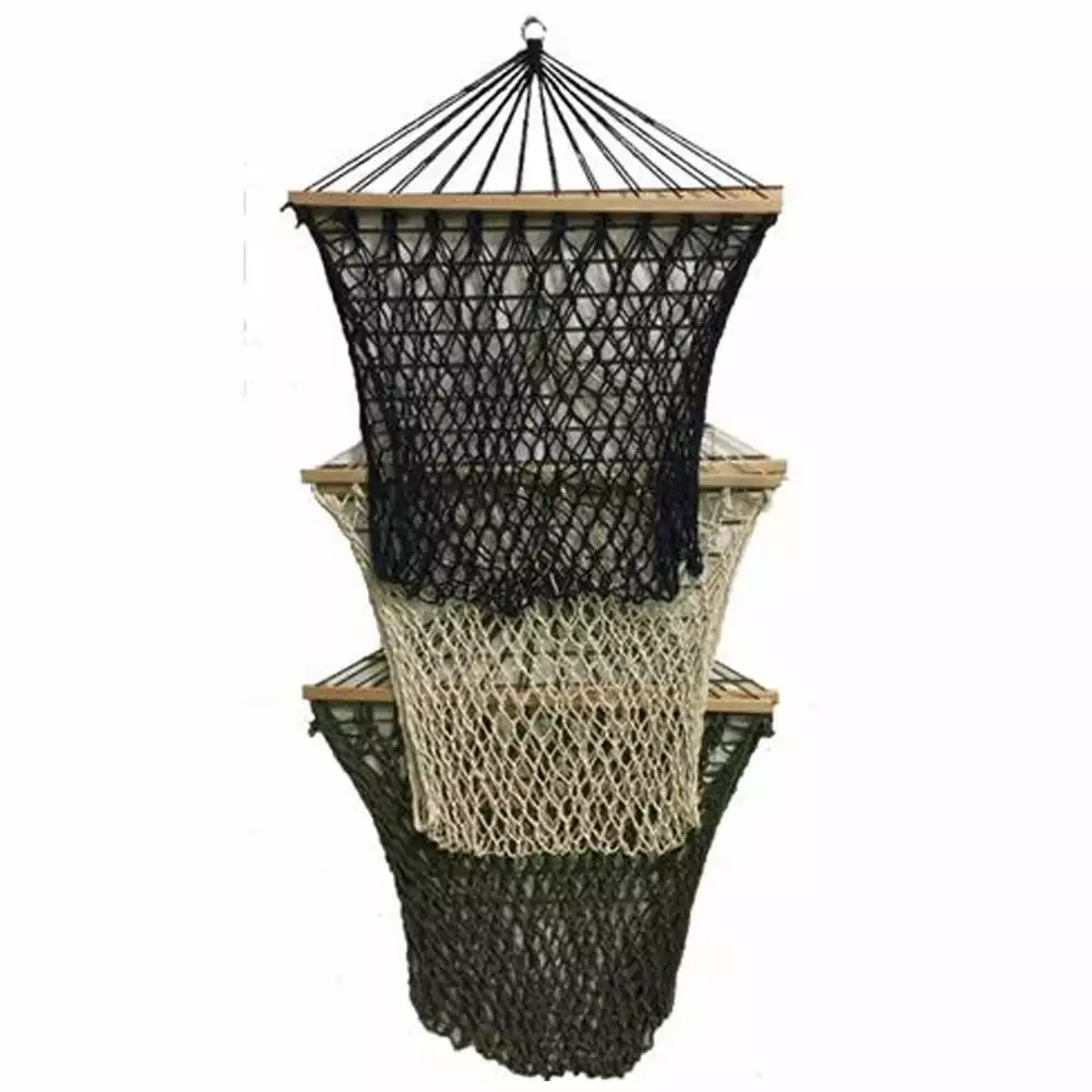The Maple Ridge Cotton Rope Hammock is perfect for an afternoon of relaxing in the great outdoors. Featuring rope webbing with a wood spreader bar for comfort.