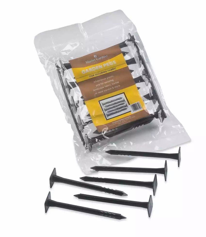 Master Gardner’s Anchors Pegsproperly secure and anchor landscape fabric,ground cover, erosioncontrol blankets and more.Β Fabric Pegs are UV stabilized plastic.
