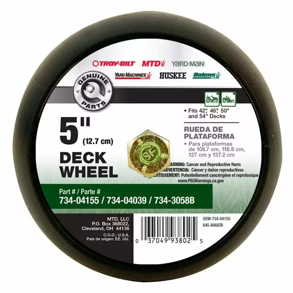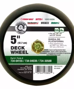 This 5″ deck wheel fits most MTD, Troy-Bilt, Bolens, White Outdoor, Huskee, MTD Gold, Yard-Man and Yard Machines riding tractors with 46″ decks.