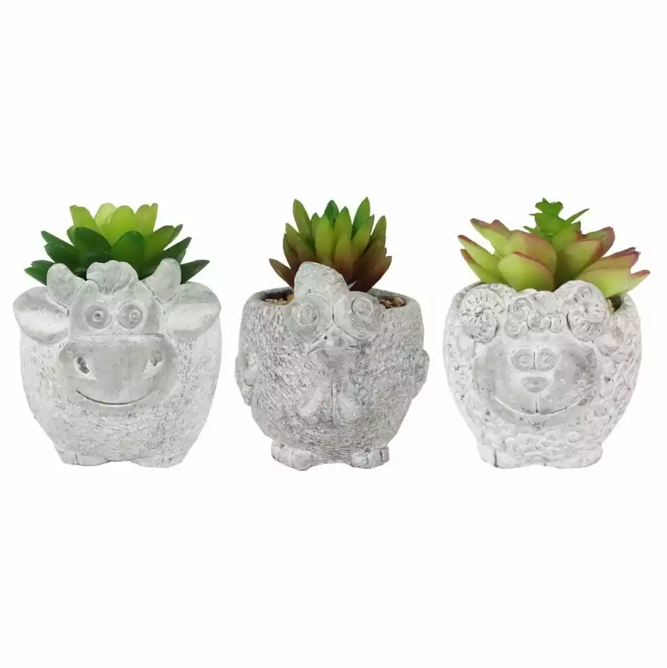 Everyone loves succulents! You don’t need a green thumb to enjoy these vividly realistic succulent plants in cute little farm animal pots. They’re both a little Zen and modern and a little country with their sweet country critter design of a rooster, cow, and sheep! It’s a beautiful and charming way to refresh your home design!