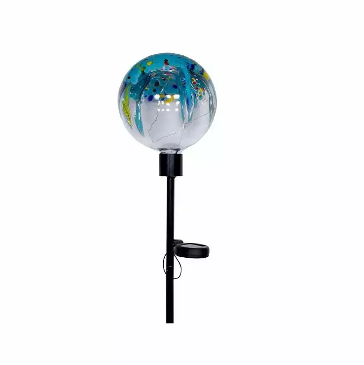 Alpine’s solar colorful raindrop splashes glass ball LED garden stake is sure to create the perfect garden dΓ©cor statement! Place in a garden, yard, pathway or landscape, this gorgeous one of a kind globe stake looks like a piece of art during the day and lights up your outdoor space at night! Lasts up to 6 hours on a full charge.
