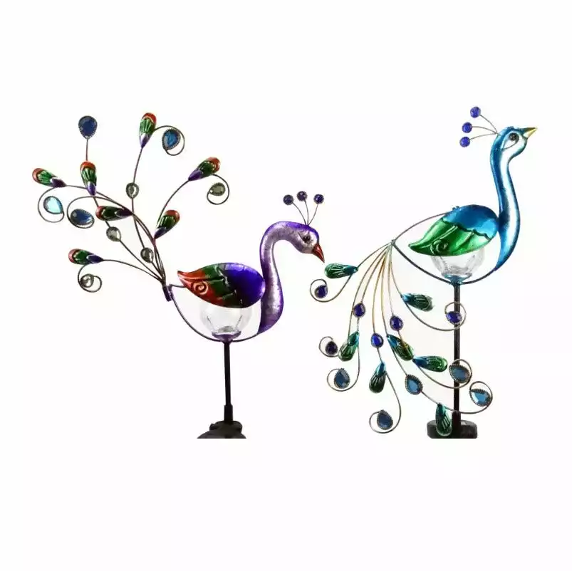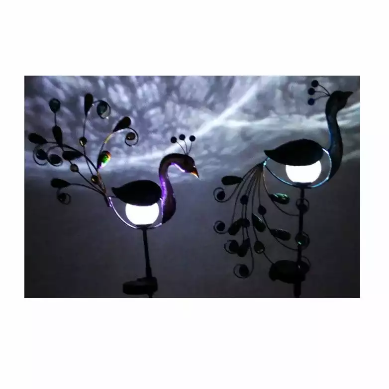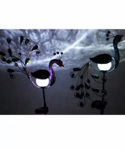 These gorgeous peacock solar stakes will certainly add a cheerful and colorful enhancement to your outdoor garden space. Place in a sunlit area where you can enjoy their beauty during the day and watch them light up at night!
