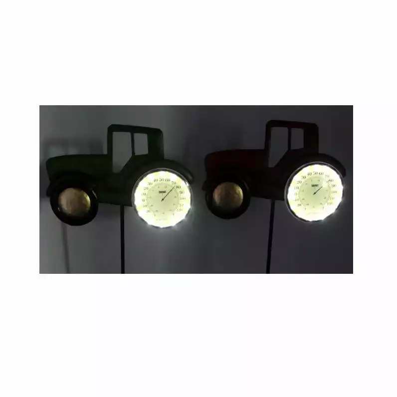 These vintage style solar tractor thermometer garden stakes with LED lights are the perfect dΓ©cor piece for any garden, yard or pathway! The LED lights are strategically placed to light up the thermometer so you can check the temperature night or day while creating a nice dΓ©cor element to your outdoor space!
