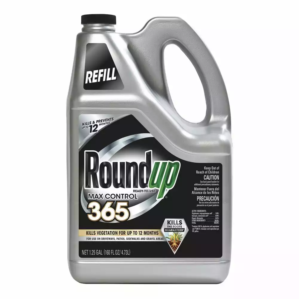 Roundup Ready-To-Use Max Control 365 Refill kills and prevents weeds for up to 12 months by creating an invisible barrier. Not only does it kill visible weeds, it kills them down to the root, guaranteed (Consumer Guarantee: If for any reason you are not satisfied after using this product, simply send us original proof of purchase, and we will refund the purchase price). Simply pour the ready-to-use refill into an empty Roundup Brand Premium Sprayer or an empty Roundup Ready-To-Use Max Control 365 bottle. For use on driveways, patios, sidewalks, and gravel areas, Roundup Ready-To-Use Max Control 365 Refill is rainproof in 30 minutes with visible results in 12 hours. Roundup works. Fast.