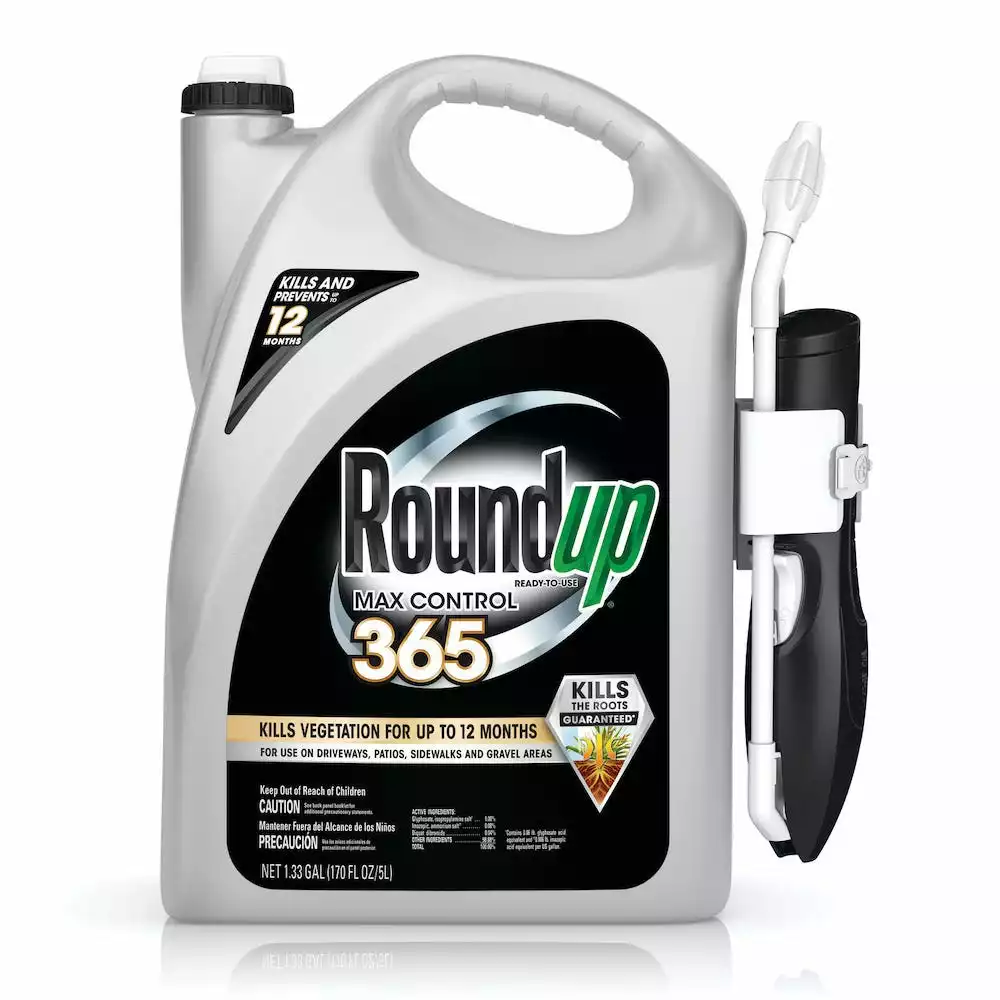 Roundup Ready-To-Use Max Control 365 kills and prevents weeds for up to 12 months by creating an invisible barrier. Not only does it kill visible weeds, it kills them down to the root, guaranteed (Consumer Guarantee: If for any reason you are not satisfied after using this product, simply send us original proof of purchase, and we will refund the purchase price)! Apply the no-mix formula with the Comfort Wand with continuous spray and extended reach for no bending. For use on driveways, patios, sidewalks, and gravel areas, Roundup Ready-To-Use Max Control 365 is rainproof in 30 minutes with visible results in 12 hours. Use Roundup to kill weeds. Fast.