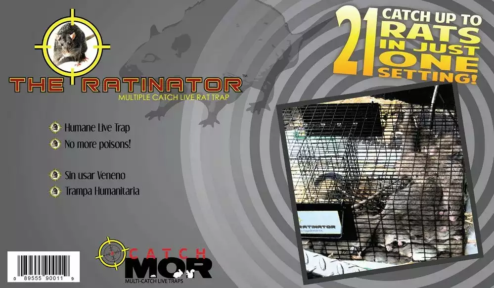 The Ratinator is a unique, one-of-a-kind, multi-catch rat trap that can catch swarms of rats.