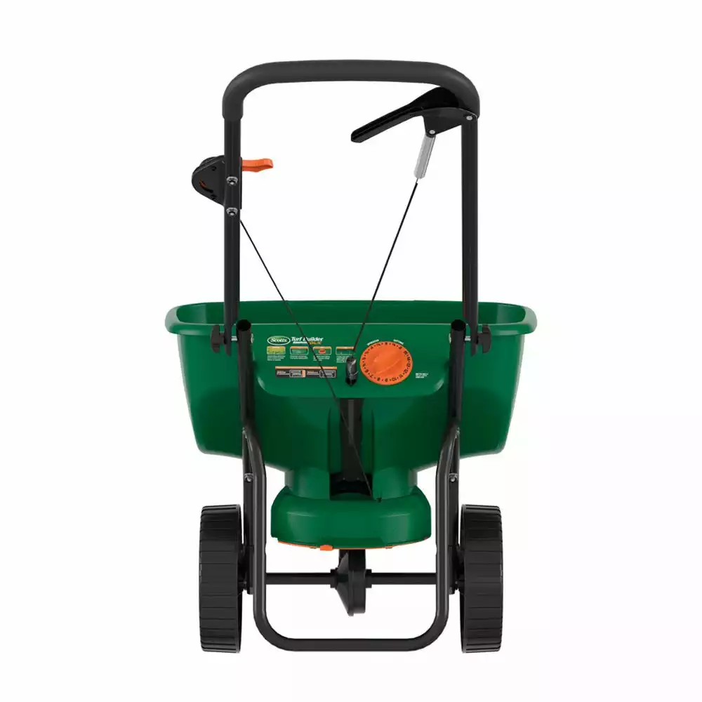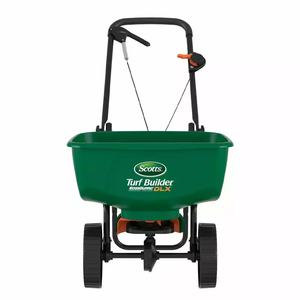 - Use the Scotts Turf Builder EdgeGuard DLX Broadcast Spreader to apply Scotts lawn care products