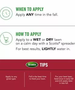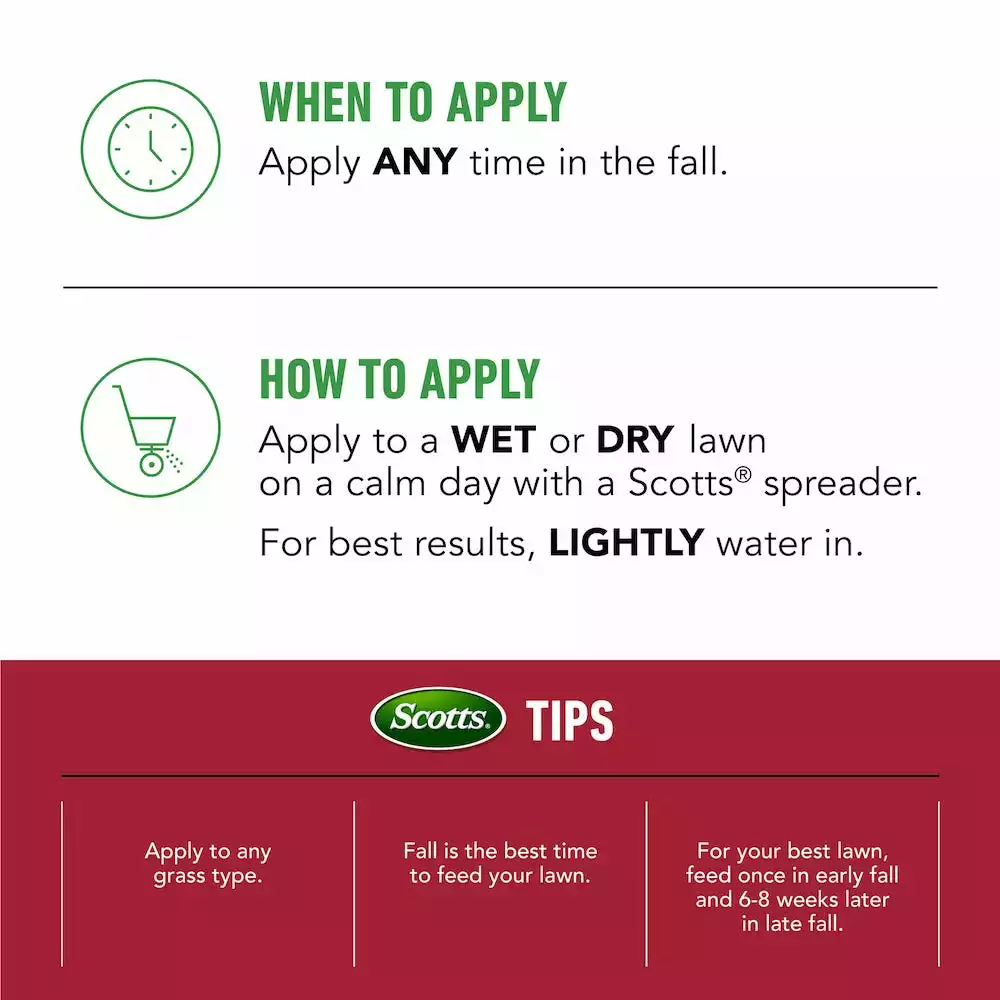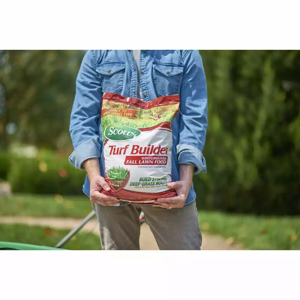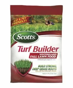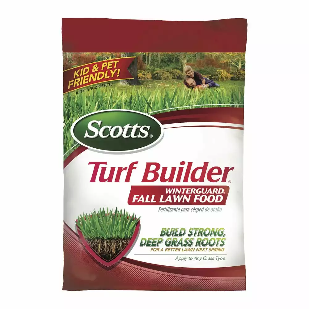 Fall is the best time to feed with Scotts Turf Builder WinterGuard Fall Lawn Food. It builds strong, deep roots for a better lawn next spring. The lawn food is formulated to deliver the nutrients lawns need in the fall to repair damage from the heat, drought and activity of the summer, ensuring stronger grass in the spring.