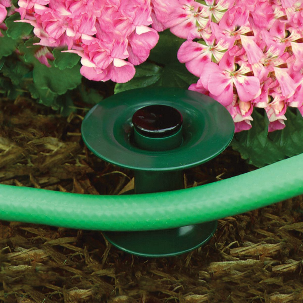 Does your garden hose tend to wander through your flowers or landscaping? If you are looking to keep your garden hose off of your delicate foliage then these hose guides are the solution for you. The easy in-ground installation allow you to put them where you need in order to guide your garden hose away from your flower beds and landscaping. Plus the green color blends well into any landscaping so no one will even notice! Keep the petals and leaves where they belong and keep your garden hose off of your plants with the Suncast® Hose Guide.