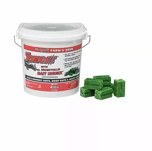 Tomcat with Bromethalin is a cutting-edge product, providing an alternate mode of action. This acute non-anticoagulant provides sure, fast control*. Rodents stop feeding after eating a toxic dose of Tomcat with Bromethalin, so more rodents are controlled with less bait. There is a reduced risk of secondary poisoning; pets are less likely to be harmed if they accidentally eat a poisoned rodent.
