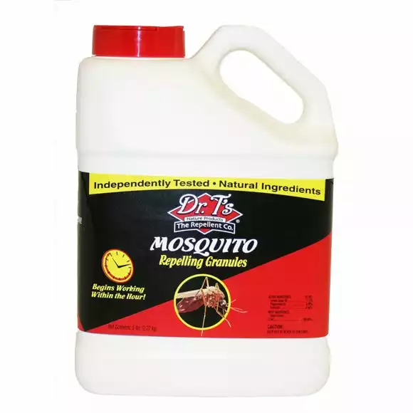 Dr. T’s Nature Products 5 lbs. Mosquito Repellent is made with a natural formula that includes lemon grass, mint and garlic oils. This repellent can be quickly applied with the built-in sprinkler cap or it can be applied to your lawn with a fertilizer spreader. The product contains enough granules to protect up to 4,000 sq. ft. and will become effective within an hour. For ideal efficiency, the formula should be applied every 2 to 3-weeks.