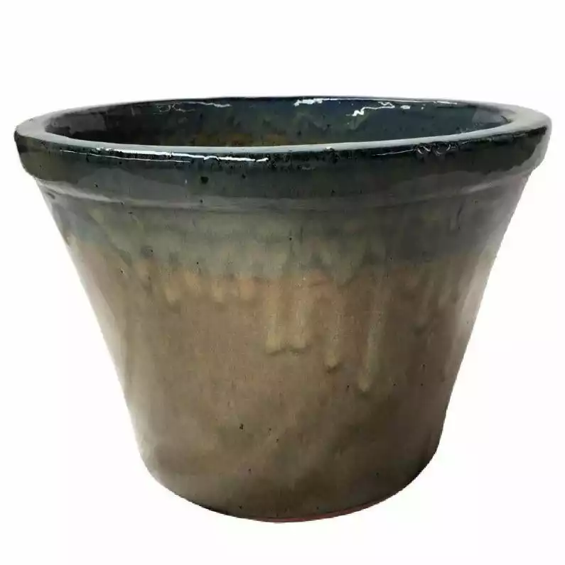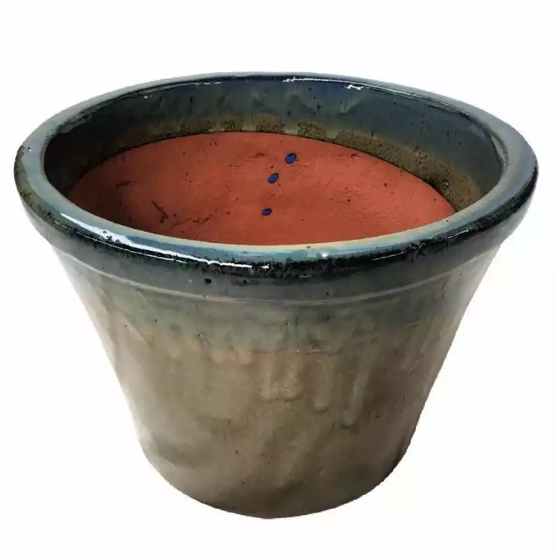 - Glazed planter with attached saucer