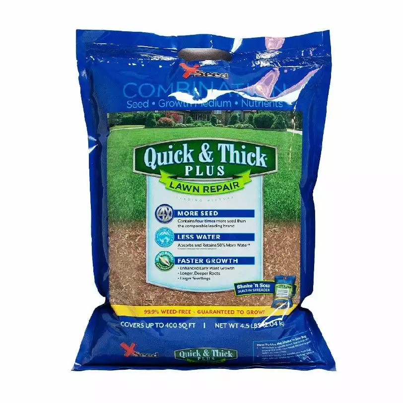 Quick & Thick Plus Lawn Repair contains everything you need to grow a thick and permanent turf, FAST! Our revolutionary mixture of ultra-premium grass seed, super absorbent growth medium, and double nutrient pack will grow grass everywhere…guaranteed!